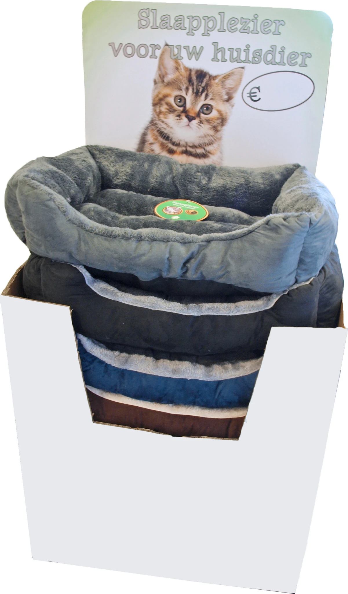 Divan voor de kat, kitten of kleinere hondenrassen. Heerlijke divan om lekker in weg te dromen. De zachte pluche voering maakt deze divan tot een zeer comfortabele verblijfplaats voor uw dier. Afmeting: 50×40 cm. Verkrijgbaar in verschillende kleurencombinaties.