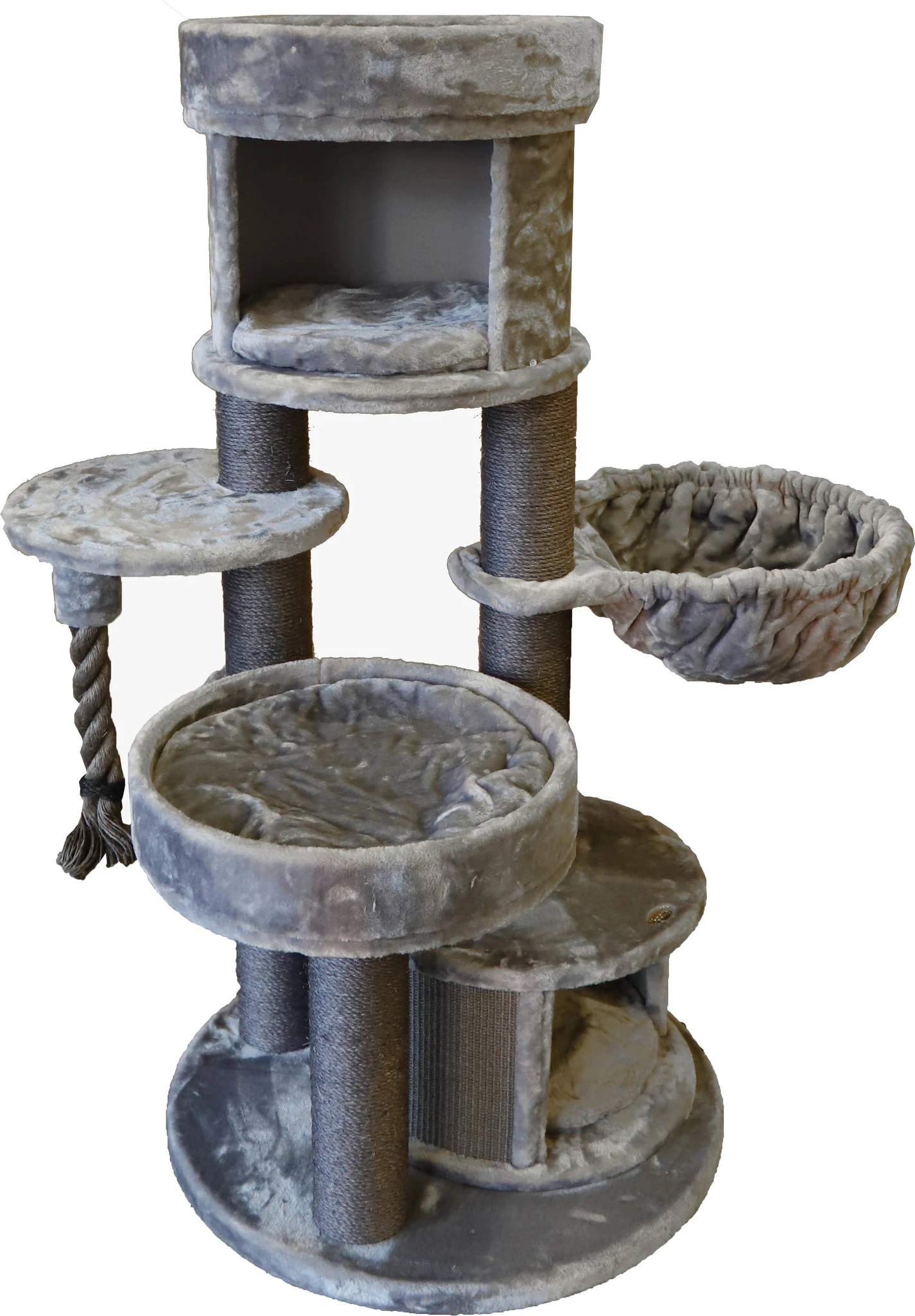 De krabpaal dient als een plek waar katten kunnen krabben, klimmen, spelen en ontspannen. Het krabben aan de palen helpt katten bij het onderhouden van hun klauwen en markeert ook territorium. De platforms en ligplaatsen bieden comfortabele rustplekken waar katten kunnen uitrusten en observeren.