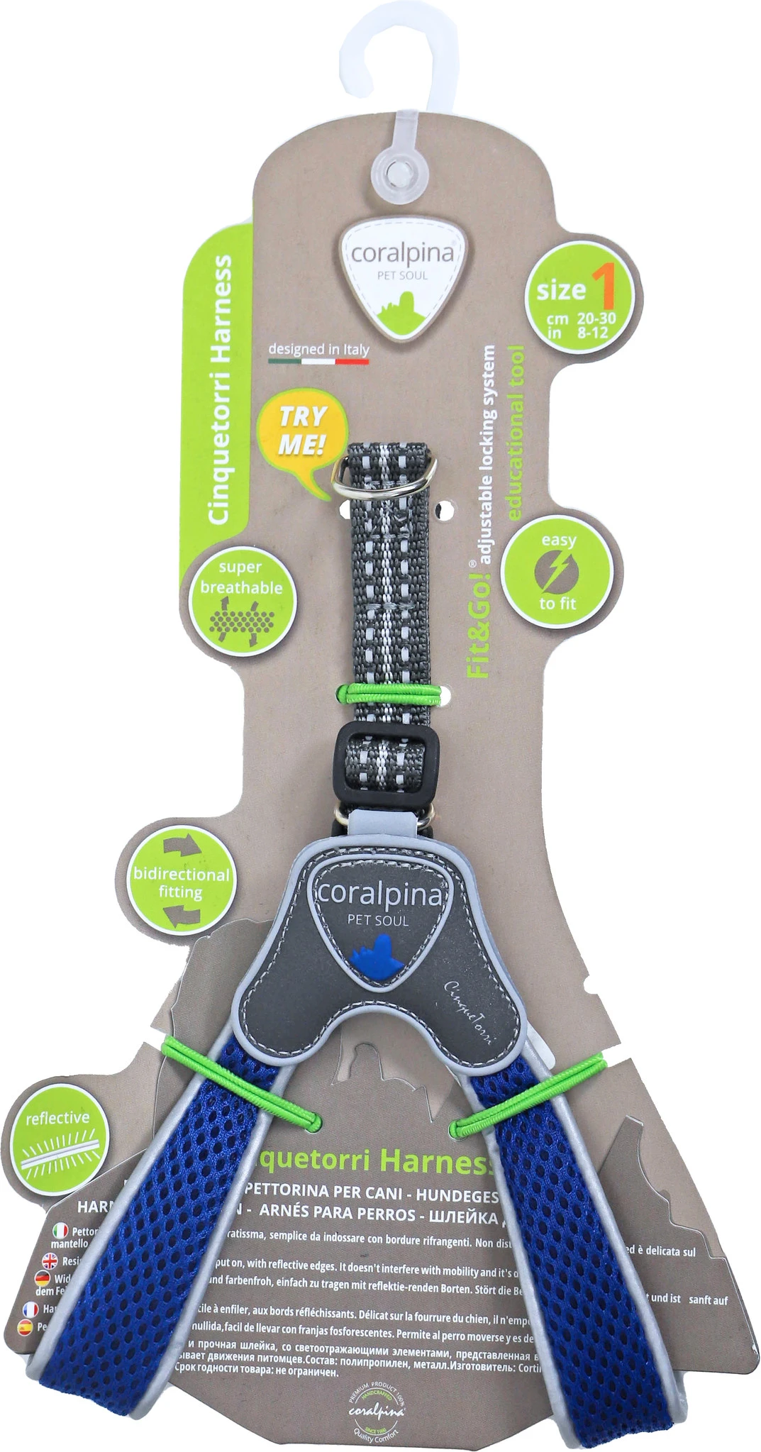 Het Cinquetorri harness is doordacht ontworpen, zodat het de bewegingen van de hond niet belemmert. Om ervoor te zorgen dat het schuren op de vacht tot het minimum wordt beperkt heeft dit tuig geen naden op de plaats waar de druk het hoogste is.