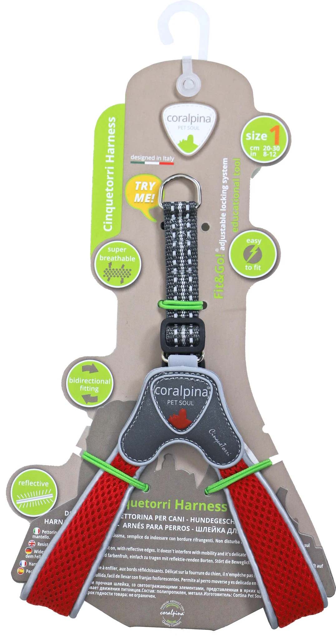 Het Cinquetorri harness is doordacht ontworpen, zodat het de bewegingen van de hond niet belemmert. Om ervoor te zorgen dat het schuren op de vacht tot het minimum wordt beperkt heeft dit tuig geen naden op de plaats waar de druk het hoogste is.