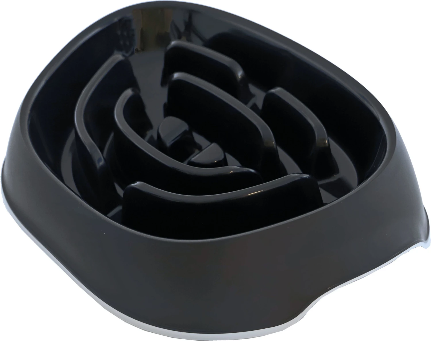 Moderna plastic anti-schrok eetbak Slomo, inhoud 950 ml. De anti-slip rubberen rand voorkomt uitglijden en kantelen. Speciale vorm om het eten te vergemakkelijken. Matte buitenkant en glanzende binnenkant. De oppakbare zijkanten vergemakkelijken het eten geven. Verkrijgbaar in een maat voor alle rassen. Premium kwaliteit voor langdurig gebruik. Vaatwasmachinebestendig voor dagelijks gemak. Voor levensmiddelen goedgekeurd, BPA-vrij, niet-giftig plastic.