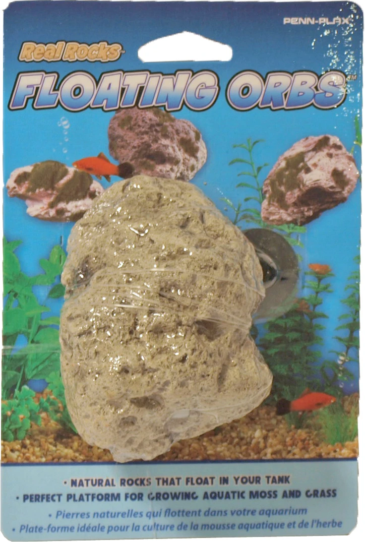 Deze drijvende steen geeft een zeer bijzonder decoratief effect in iedere aquarium. Door middel van een zuignap en een dunne nylonlijn kunt u de steen laten zweven op iedere gewenste hoogte laten.