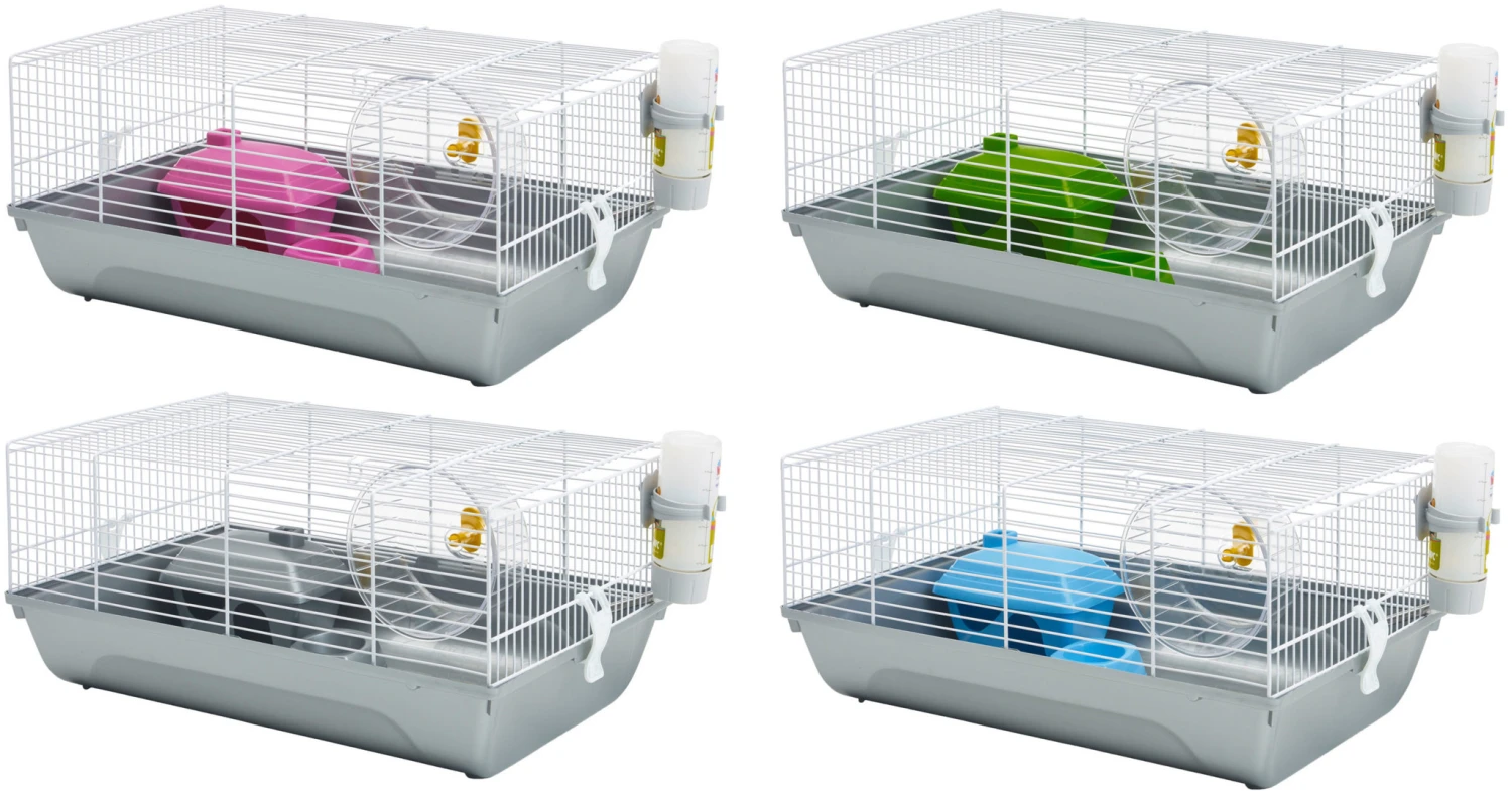 Savic hamsterkooi Martha is een complete kooi met een wit traliewerk en zilvergrijze onderbak.