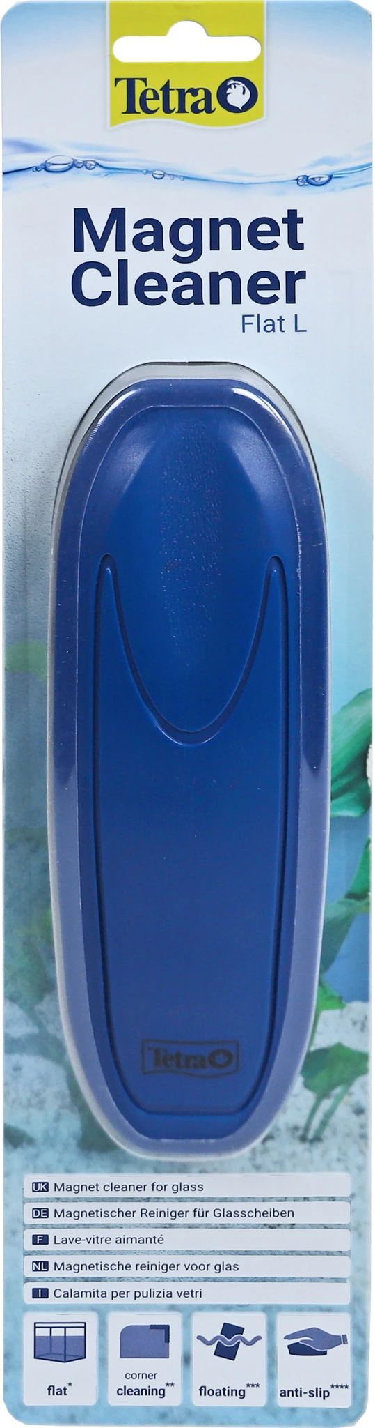 Met de Tetra Magnet Cleaner Flat L kunt u aquariumglas met een dikte tot 10 mm snel en grondig reinigen. Met de speciale reinigingshoek zijn de hoeken van het aquarium heel eenvoudig te reinigen. Het ergonomisch gevormde antislipoppervlak zorgt voor comfort tijdens het reinigen.