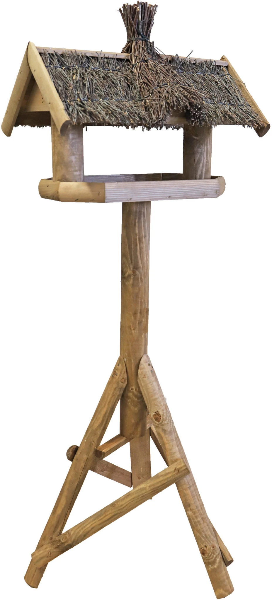Voederhuis bruin met tenen stulpdak op poot is een gezellig en duurzaam voederhuis voor vele soorten buitenvogels. Het voederhuis is makkelijk te verplaatsen en is gemaakt van vurenhout en is afgewerkt met een tenen stulpdak. Het hout is geïmpregneerd in een bad, waardoor dit huisje het gehele jaar gebruikt kan worden. Zo zullen diverse soorten buitenvogels uw tuin bezoeken, die u op hun beurt laten genieten van hun aanwezigheid en bedrijvigheid.